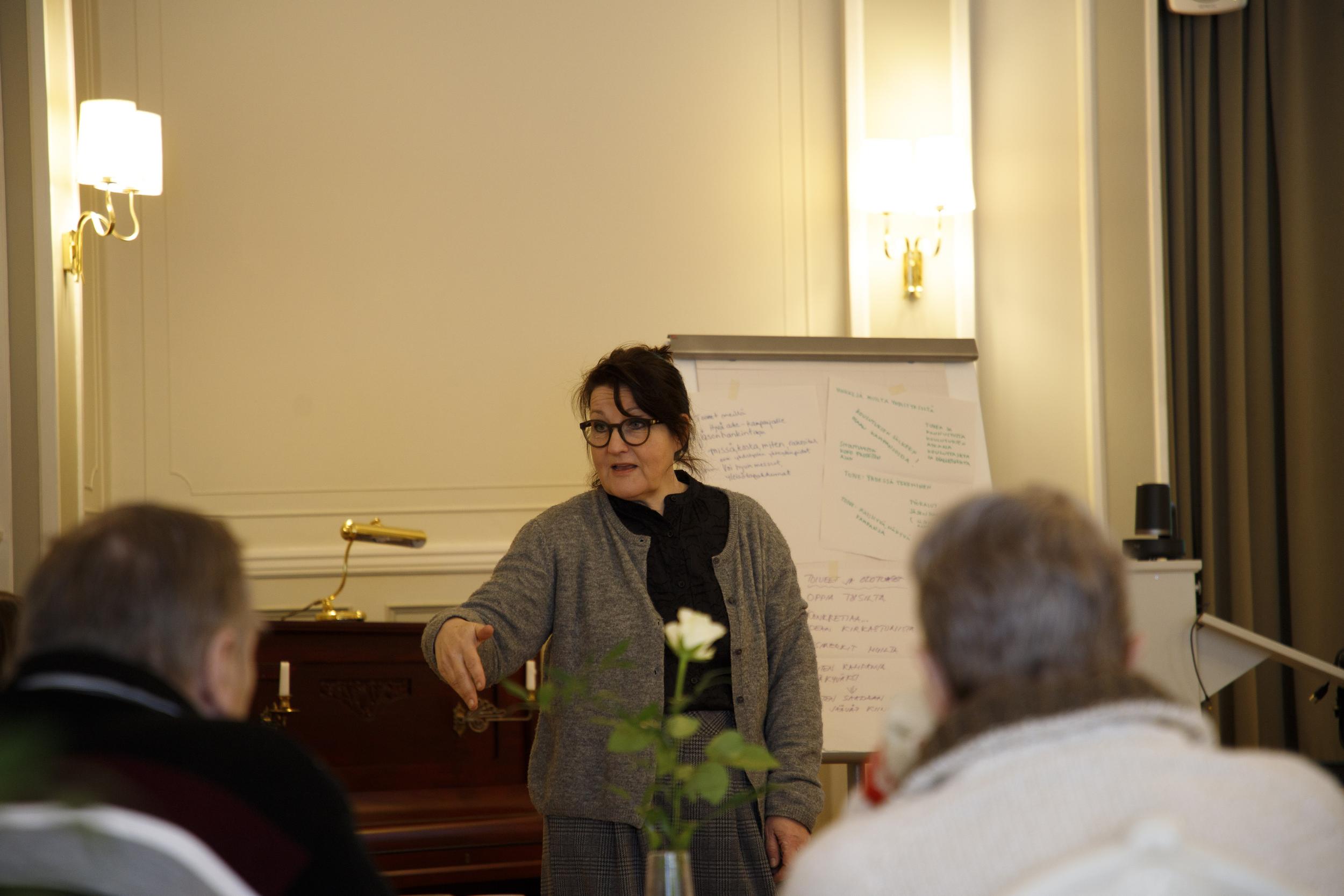 Ennen tansseja, kukitettiin pitkäaikainen puheenjohtaja Taimi Valtanen. Samalla myös laulettiin hänelle syntymäpäivälaulu.