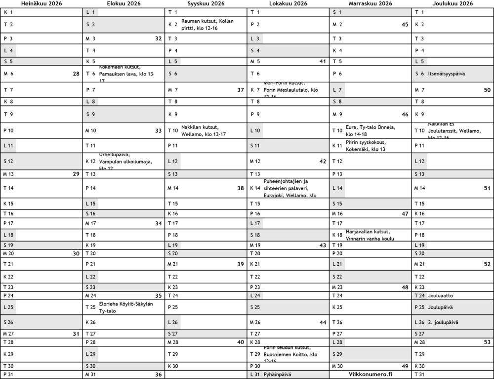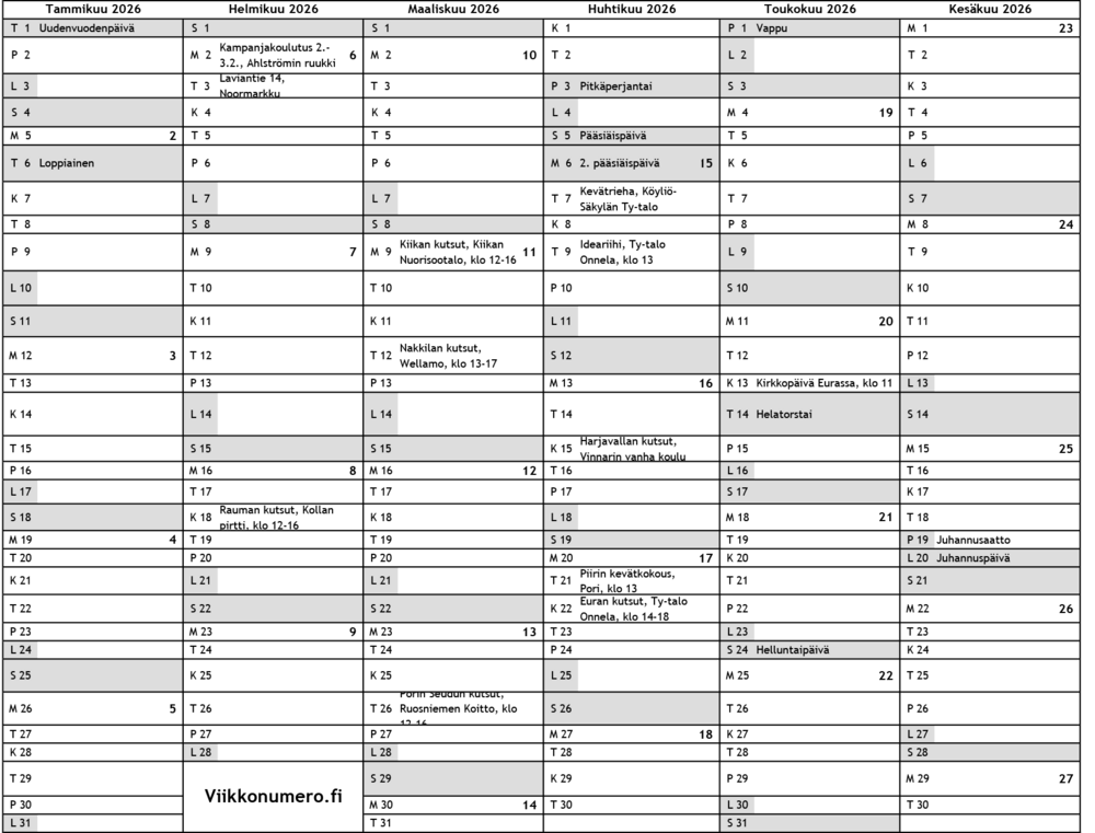 Piirin toimintakalenteri